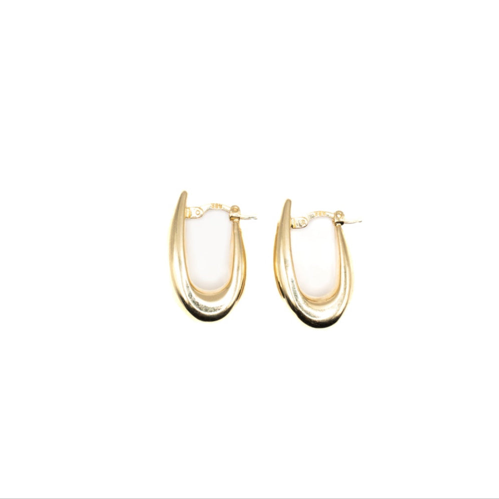 Sculptural and sleek. These 14k gold hoops curve in a modern crescent shape that hugs the ear with elegance. Their fluid silhouette brings a bold yet refined edge to any look—perfect for day or night.