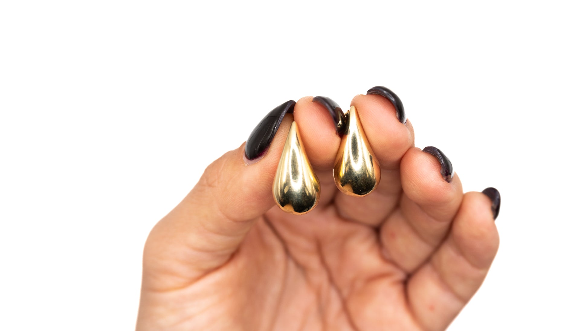 Inspired by liquid gold. These 14k earrings feature a smooth, sculpted teardrop silhouette that radiates warmth and elegance. Bold yet refined, they make a luminous statement from day to night.