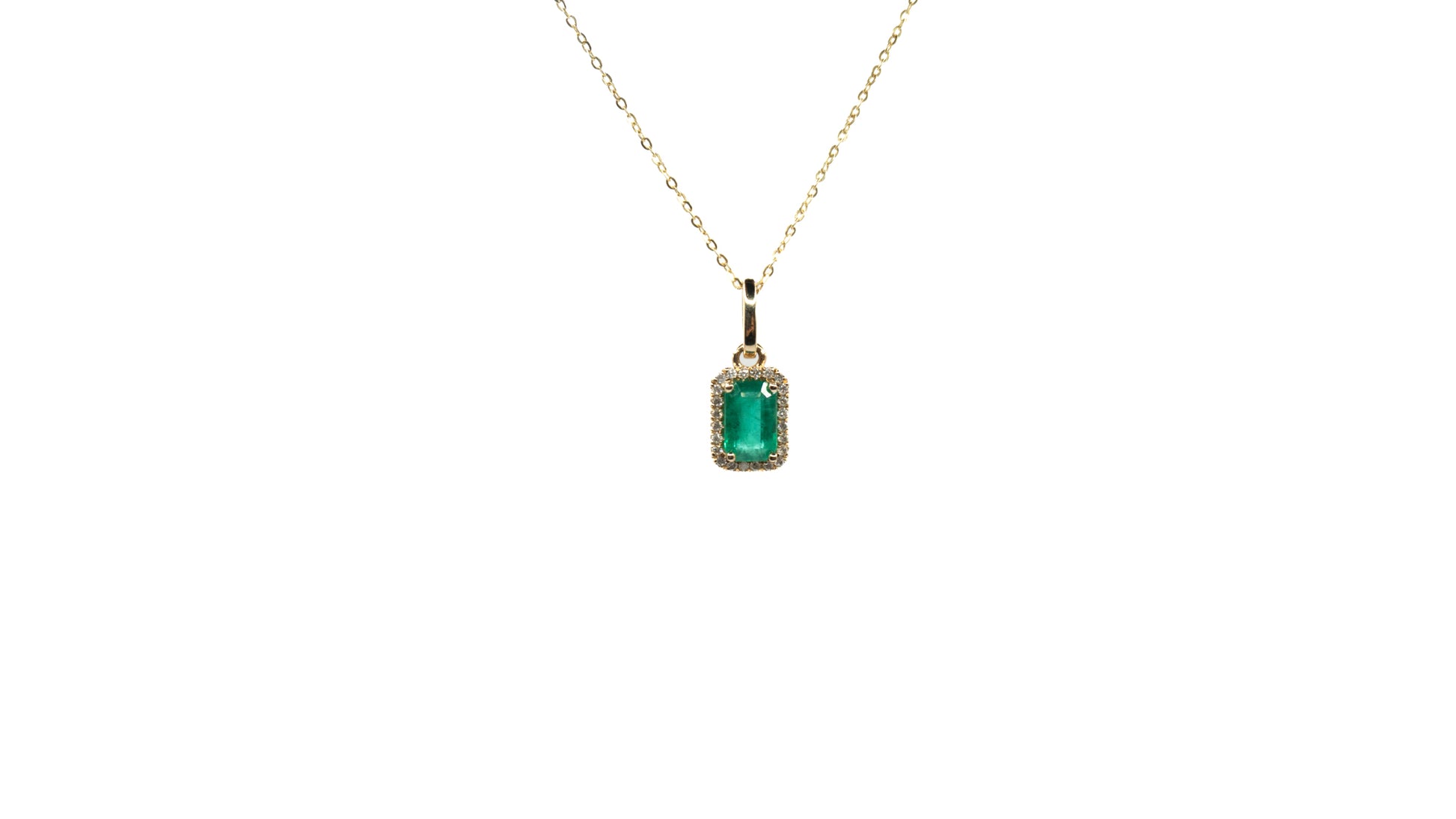 Stones: 0.60ct Green Emerald, 0.08ct Diamond