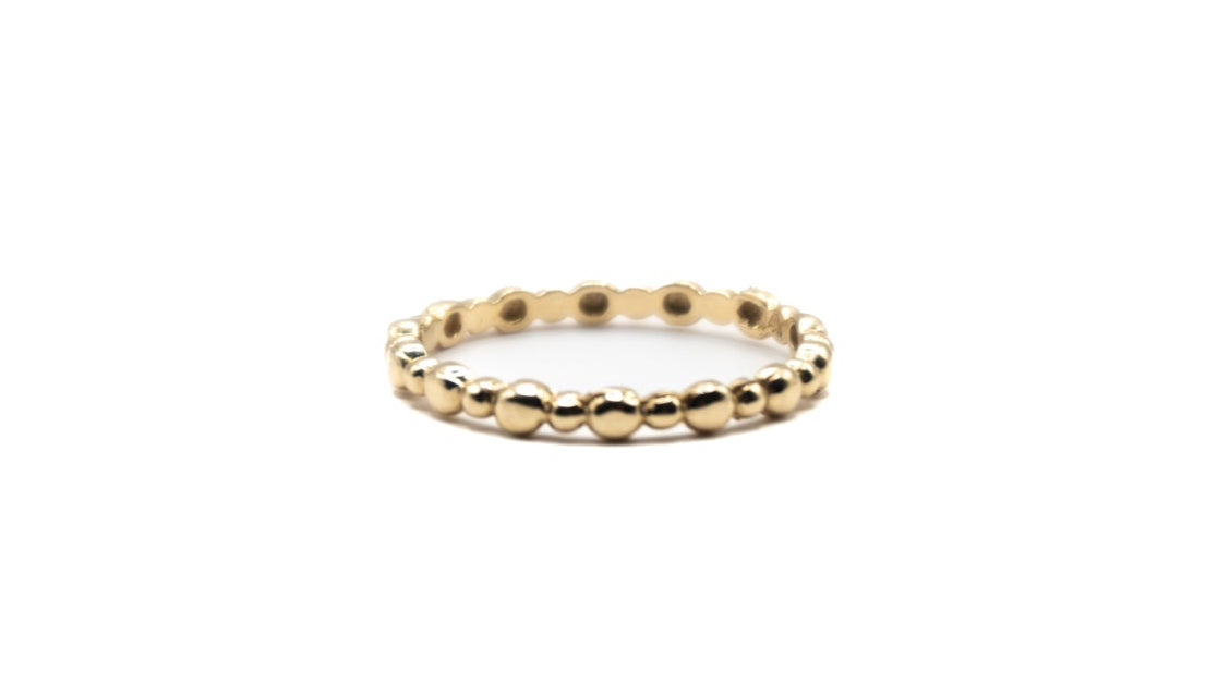 Inspired by nature’s quiet beauty. This 14k gold ring features an organic pebble-like texture for a soft, radiant glow. Unique yet timeless—perfect for stacking or wearing solo.