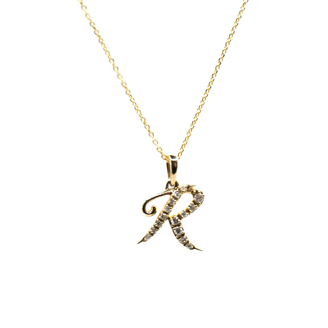 Elegant and personal. This 14k gold necklace features a sparkling pavé diamond letter R in a graceful script design. A timeless piece perfect for layering or gifting with meaning.